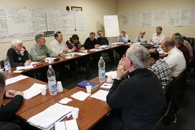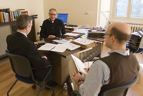 Conversación del Padre General con Tom Rochford, Pierre Bélanger y Dani Villanueva, equipo de comunicación de la Congregación General 35, el domingo 10 de febrero de 2008.